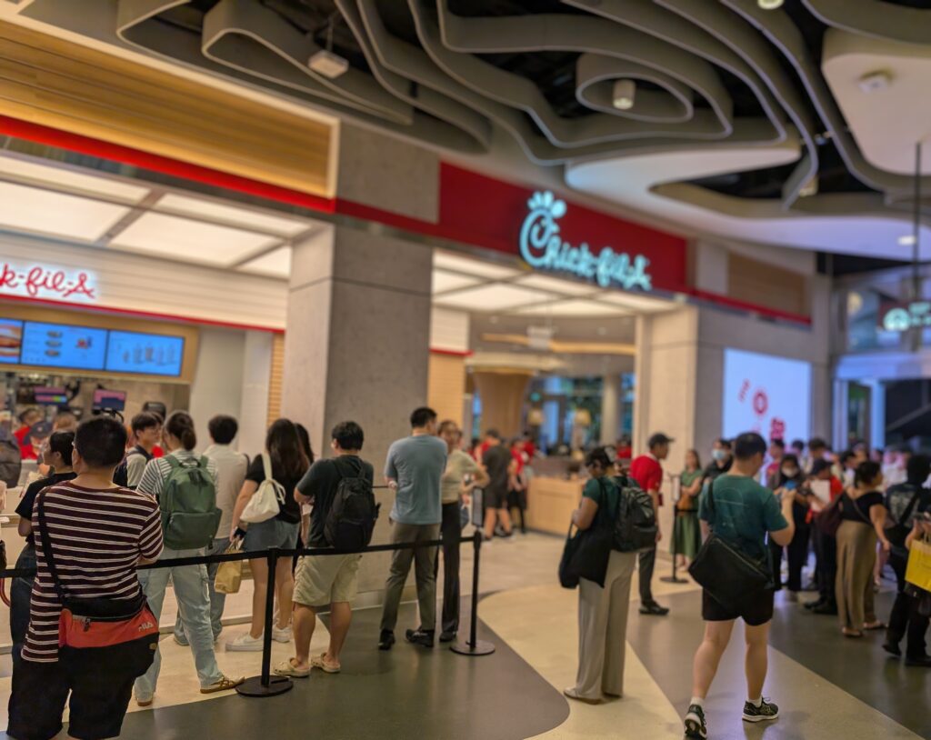 まず押さえておきたいのは、これは単なる「新しいアメリカ系ファストフード」ではないという点です。チックフィレは、アメリカでは日曜定休を貫き、顧客満足度ランキングで常に上位に入る、やや異色のチェーンです。その運営哲学やサービス水準を、どこまでシンガポール仕様に落とし込めるかが注目されています。